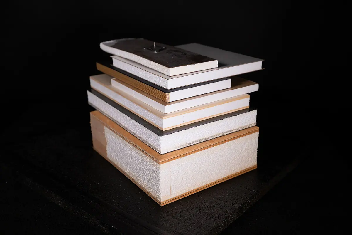 COMPACFOAM can be processed in much the same way as wood. This means that no additional or different work steps are required. In addition, the uniqueness of the material often replaces complex multi-layer structures with a simple solution.