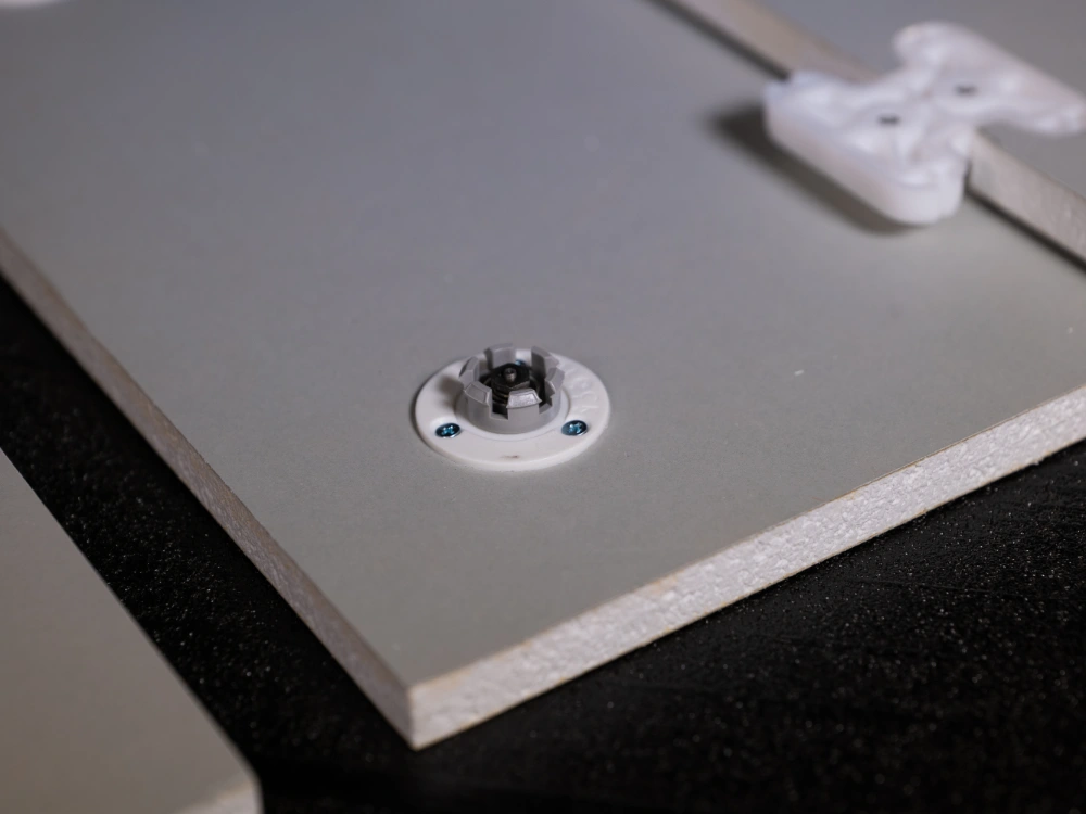COMPACFOAM is up to 70% lighter than wood-based materials, but just as workable and similarly stable. Load-bearing screws can be screwed in directly and furniture edges and millings can be attached without any problems. In contrast to wood-based materials and many other functional and lightweight materials, the material is completely insensitive to moisture and dimensionally stable. Thanks to the special manufacturing process, it does not swell or shrink – the boards do not bend, even under changing temperature and humidity conditions.