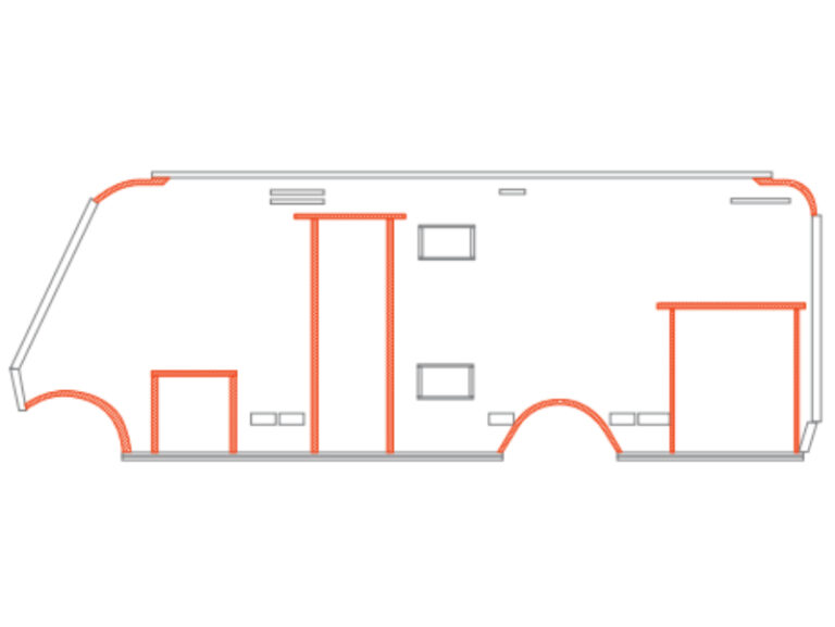 Thanks to its low weight, COMPACFOAM enables larger living spaces in fully integrated motorhomes without exceeding the weight limits. The material offers excellent sound and heat insulation for quiet nights and comfortable temperatures. Thanks to the direct screwability without pre-drilling, stable connections are created for furniture fastenings and wall paneling – ideal for the high-quality interior fittings of large motorhomes.