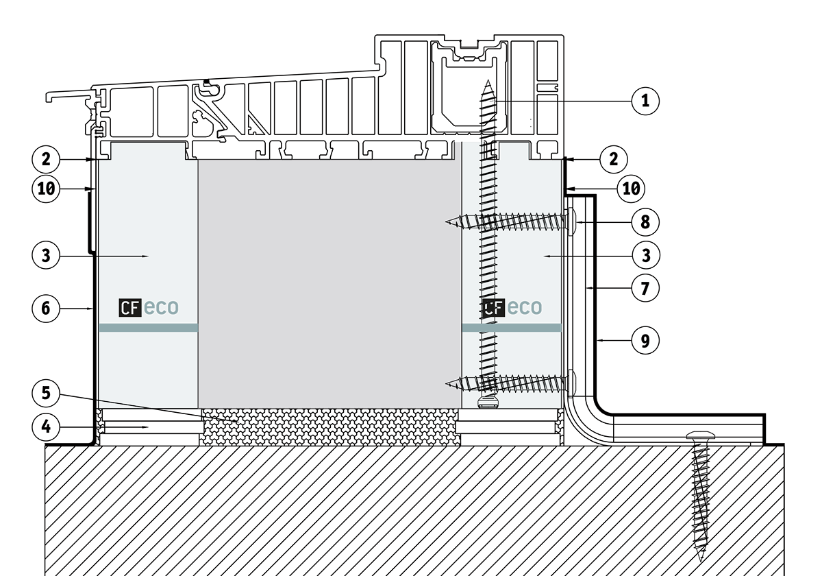 - Window frame screw 7.5mm – no pre-drilling required in the substructure profile; spacing and anchoring length according to static requirements or RAL guidelines