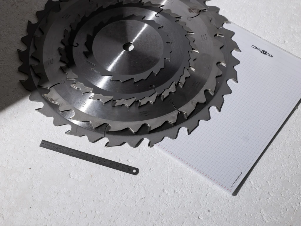 For the cutting of COMPACFOAM we recommend saw blades with flat teeth and chip thickness limiter and very large tooth pitch. Optimum cutting results are achieved at 2000 rpm.