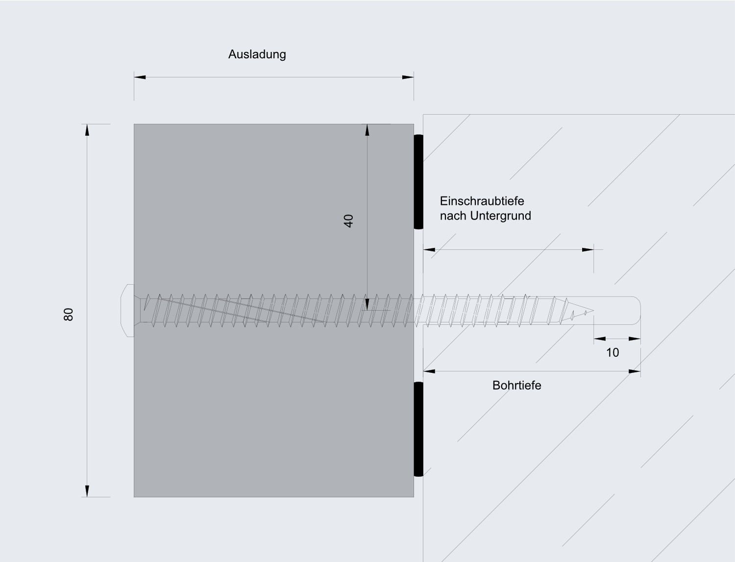 The screw-in depth depends largely on the material of the building structure, as different materials have different strengths and properties. Hard materials such as steel or concrete require shallower screw-in depths, while soft materials such as aerated concrete or lightweight bricks require a greater anchoring depth to ensure optimum stability. See table below.