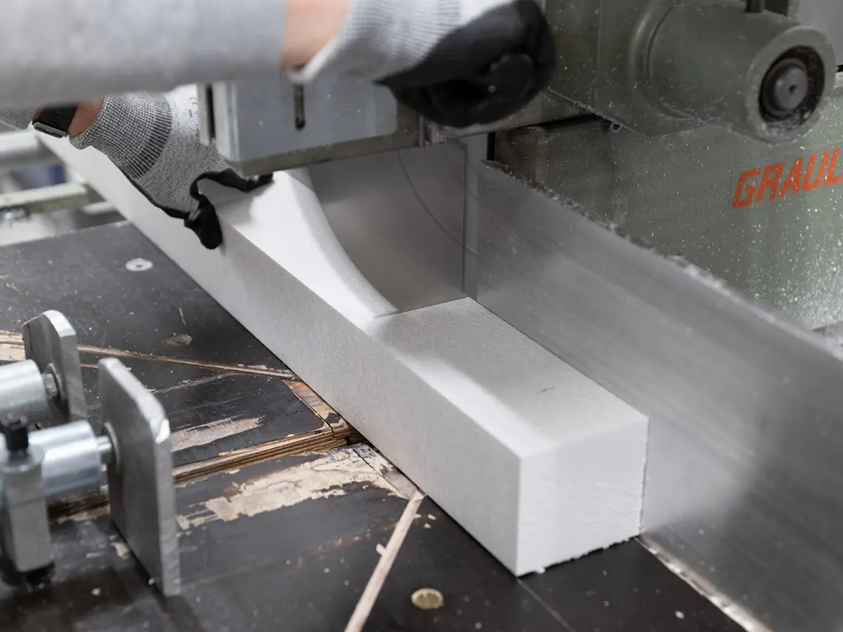 COMPACFOAM can be easily cut to size using commercially available saws such as circular saws, pressure beam saws or hand-held circular saws. It is important to use saw blades with a wide tooth spacing and free chip space.