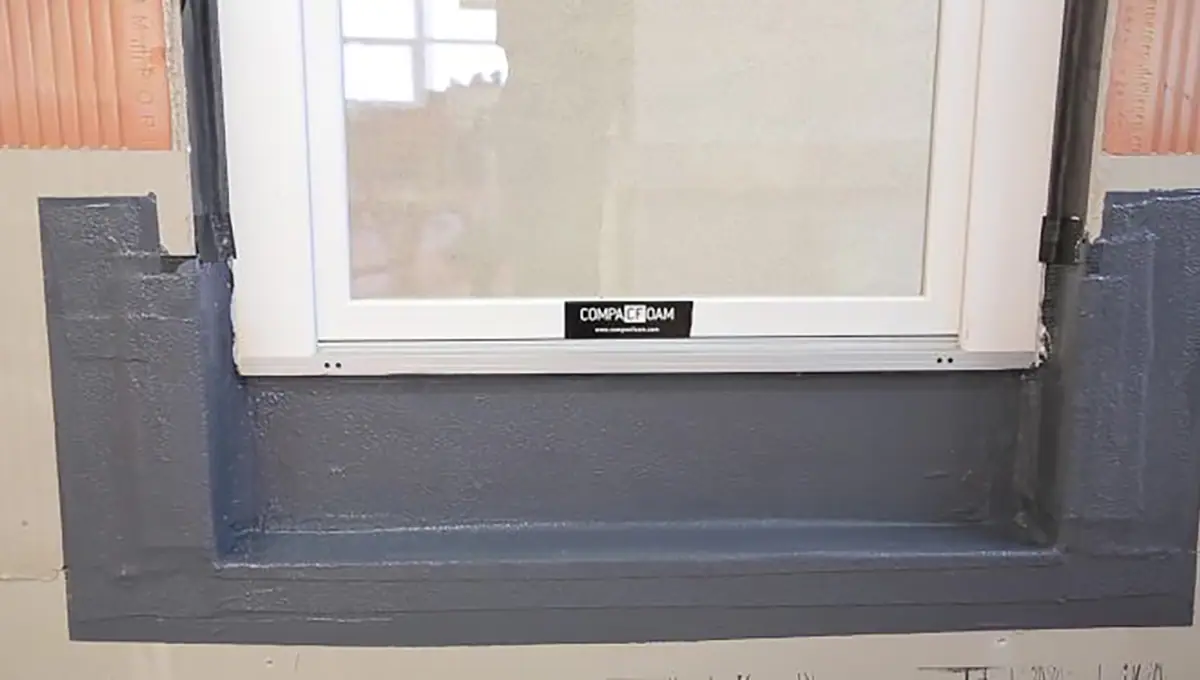 The connection of floor-to-ceiling window and door elements to the adjoining components is one of the most important interfaces of the building envelope. The connection must be made with a waterproof material. Liquid plastics or bitumen membranes are usually used for this purpose. With COMPACFOAM, a secure and permanent connection with liquid plastics and bitumen membranes is possible.
