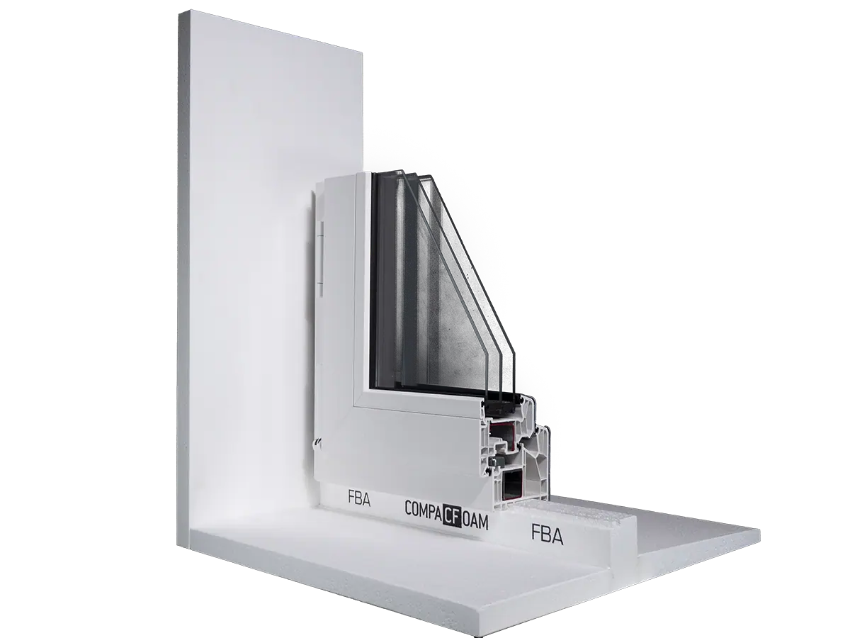COMPACFOAM FBA profiles replace conventional PVC window sill connection insulation profiles. The optimum lambda value of COMPACFOAM leads to a lower U-value for windows without thermal bridges.