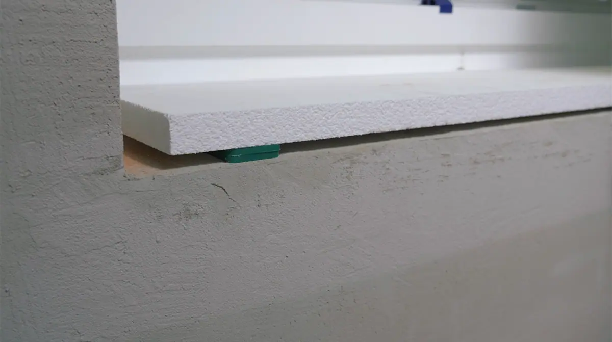 The CF insulation wedge offers a simple and safe formation of the second sealing level. The high lambda value of COMPACFOAM reliably prevents dangerous thermal bridges. The inclination of the window sill to the front is ensured at 5°.