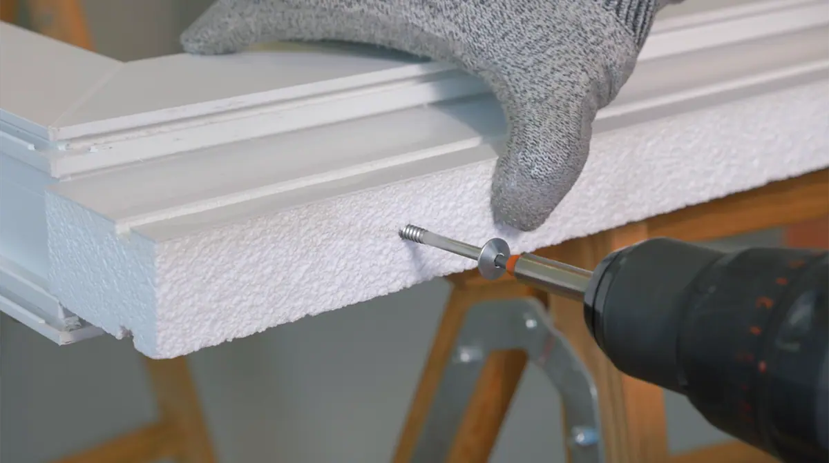 to the productsDue to the high strength of CF-FBA, the window sill can also be fixed with special window sill screws without any problems. In conjunction with the PVC surface, the window sill can also be fixed with standard window sill screws. Pre-drilling in COMPACFOAM is not necessary.